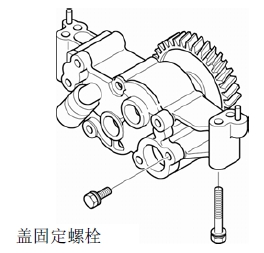 (2) 取下機(jī)油泵蓋固定螺母,拆下機(jī)油泵蓋。機(jī)油泵蓋與兩個(gè)定位銷(xiāo)固定在一起。