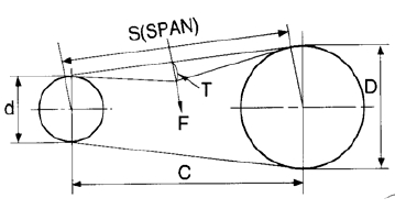 如果在皮帶切線(xiàn)和皮帶輪當(dāng)中施加偏差力“F”,皮帶拉緊調(diào)整適度。