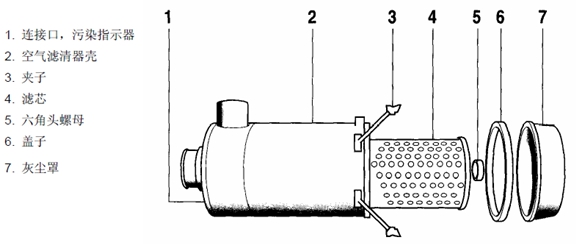 � 打開(kāi)六角頭螺母,取下臟的濾清器濾芯更換或清洗。