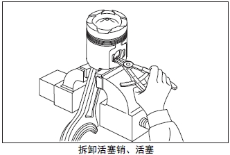 檢查活塞的燃燒面、活塞銷孔、活塞環(huán)槽、運(yùn)動表面和內(nèi)面,發(fā)現(xiàn)異常時(shí)更換新品。