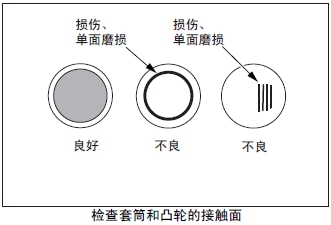 曲軸齒輪的齒面有剝離、磨損、單面接觸等異常時(shí),更換新的曲軸齒輪。