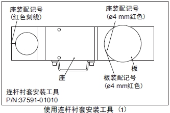 (2) 套筒A裝入心軸,套筒A的裝配記號(紅色刻線)對準(zhǔn)座臺的裝配記號(紅色刻線)后安裝在連桿襯套內(nèi)。