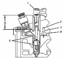 55±10N·m(41±7lbft)。A--單體噴油器的高度是從正時底座起進(jìn)行測量的。將單體噴油器的高度調(diào)整為
