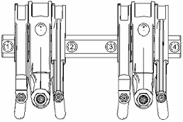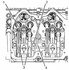 用工具 (A) 把搖臂軸組件 (4) 、氣門搖臂 (3) 以及電子單體噴油器搖臂 (1) 作為一個(gè)整體安置到缸蓋上。