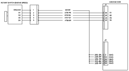 卡特彼勒365C和385C挖掘機發(fā)動機轉速旋鈕開關示意圖 |