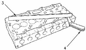 測(cè)量卡特彼勒3064/6發(fā)動(dòng)機(jī)缸蓋的平直度。利用直尺(3)和塞規(guī)(4)測(cè)量平直度。