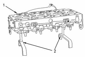 將缸蓋(1)放到8S-6691缸蓋支架組件(2)上。