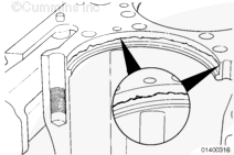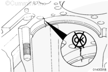 不必機(jī)加工缸體以去除可接受的裂紋。如果在初始檢查中發(fā)現(xiàn)不可接受的裂紋,則必須機(jī)加工沉孔臺階。與 Cummins® 特約維修站聯(lián)系。