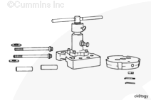 在定心環(huán)中安裝零件號為 3375061 的定位鏜桿。桿必須轉(zhuǎn)動自如。如果桿不能自由轉(zhuǎn)動,檢查以確保主軸承蓋正確安裝。如果看起來正常,將其中一個定心環(huán)移動到另一個軸承位置。