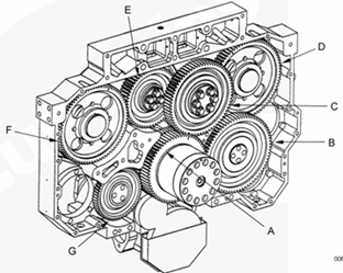 正時(shí)方法類似于QSK60發(fā)動(dòng)機(jī)。注意QSK78獨(dú)特的內(nèi)側(cè)正時(shí)位置。