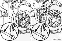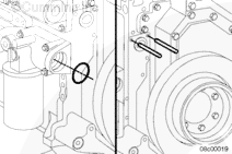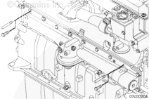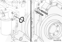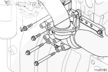 拆下兩個雙頭導(dǎo)向螺柱,然后安裝其余的安裝螺栓。擰緊螺栓。扭矩值: 72 n.m [53 ft-lb]