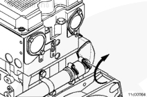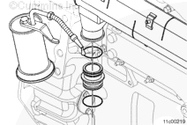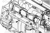 將新的 O 形圈安裝到 EGR 冷卻器冷卻液供應(yīng)管和跨接管接頭上。為了便于安裝,用清潔的發(fā)動機(jī)冷卻液、肥皂液或植物油潤滑 O 形圈。