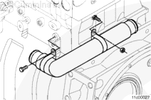 將 EGR 冷卻器冷卻液供應(yīng)跨接管插入 EGR 冷卻器冷卻液供應(yīng)管。將 EGR 冷卻器冷卻液供應(yīng)跨接管滑入 EGR 冷卻器進(jìn)口。將固定卡箍和螺釘安裝到 EGR 冷卻器上。