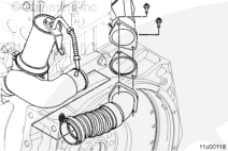 從部件上拆下保護(hù)蓋。潤滑 EGR 后連接管的軟管端。安裝軟管卡箍但不要擰緊,在 EGR 冷卻器和 EGR 閥安裝支架上安裝 EGR 后連接管和密封墊。擰緊 2 個螺釘。