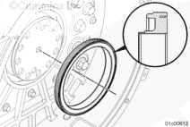 注: 在飛輪組裝完成前,可以利用少量清潔的 Lubriplate™ 105 多用途潤滑劑或等同物來協(xié)助保持導(dǎo)向軸承隔套就位。