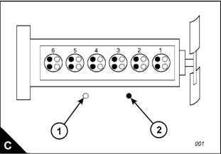clearances if necessary. Check the tappet clearance for the exhaust valv es (C2) on cylinders , and 5, and