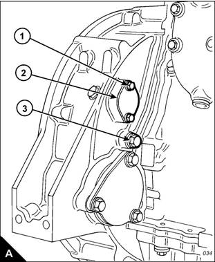 2 Remove the cover (A2) from the flywheel housing. The top bolt (A) is the timing bolt.