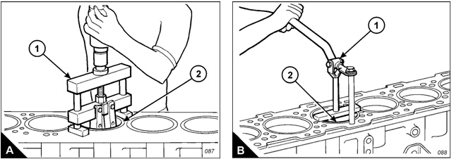 Use the special tool (A), GE5000, to remove the cylinder liners (A2). Make a note of the bore position to