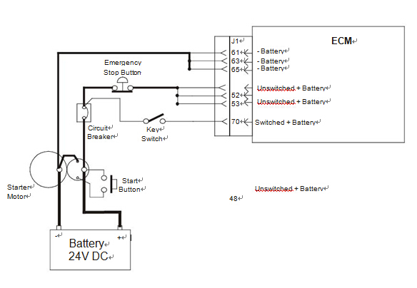發(fā)動機鑰匙開關由主機制造商提供。當ECM檢測電池電壓在輸入,ECM將