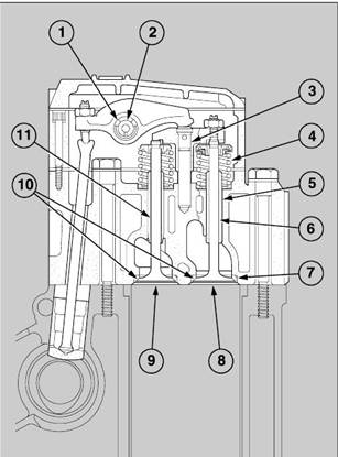 Bore of valve guide . . . . . . . . . . . . . . . . . . . . . . . . . . . . . . . . . . . . 10,998 to 11.023 mm (0.4330 to 0.4340 in)
