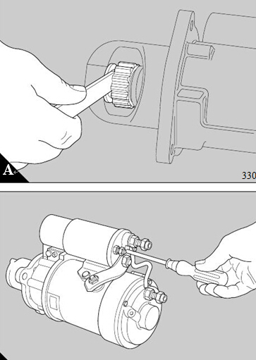 the starter motor and tighten them to 34,0 to 39,5 Nm