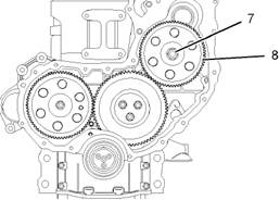 c.卸下殼體(前)蓋。請參閱本《Perkins1103/1104柴油發(fā)動機解體和組裝手冊》,“殼體(前)蓋-拆卸和安裝”。