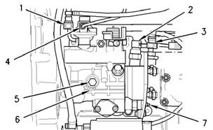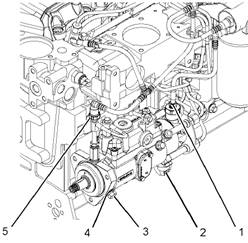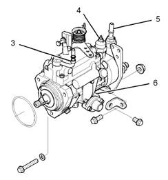 注:必須擰緊螺釘(5),以防噴油泵的軸發(fā)生轉動。從發(fā)動機上卸下噴油泵后不能使噴油泵的軸轉動。