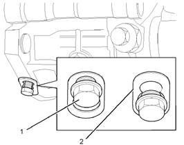 2.松開鎖緊螺釘(1)。轉動隔套(2),以便將鎖緊螺釘(1)擰緊抵到噴油泵的軸上。逆時針方向轉動噴油泵齒輪來消除齒隙。將鎖緊螺釘(1)擰緊至扭矩13N·m(9.6lbft)。
