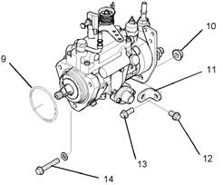 11.從殼體(前)上卸下噴油泵。從燃油噴油泵上拆卸O形圈(9)并棄置O形圈。