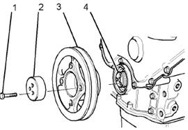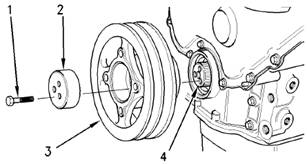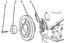 2.將Perkins1103/1104柴油發(fā)動(dòng)機(jī)標(biāo)準(zhǔn)皮帶輪(3)放置到曲軸(4)上。
