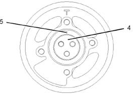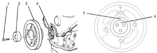 2.用曲軸(4)前面的標(biāo)記對(duì)準(zhǔn)皮帶輪(5)上的標(biāo)記,然后在曲軸上安裝皮帶輪。