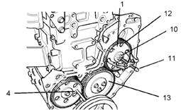 8.拆下惰輪齒輪(13)。請參閱本《Perkins1103/1104柴油發(fā)動機(jī)解體和組裝手冊》,“惰齒輪-拆卸和安裝”。