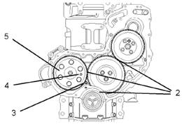 2.如果以前沒有安裝正時(shí)銷,將27610211曲軸正時(shí)銷(3)穿過前殼體插入曲軸連接臂中。如果以前沒有安裝正時(shí)銷,將27610212凸輪軸正時(shí)銷(4)穿過凸輪軸齒輪(5)并插到前殼體中。