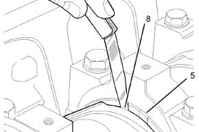 注:確保安裝上軸瓦(4)時,軸承凸舌能卡進缸體凹槽中。