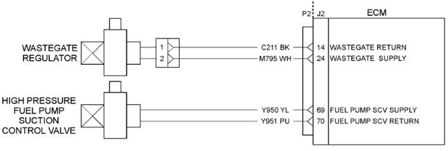 電解加工檢測下列條件: 高電流條件下輸出從ECM在旁通電磁閥 調(diào)節(jié)器 有沒有積極的168診斷代碼。 該電解加工已供電至少2秒。 如果配備,警告燈將一次診斷代碼已被激活 30秒。診斷代碼將被記錄。 發(fā)動機將被降級,這是積極的診斷代碼。在引擎之后 被降級的,電子服務工具將顯示“渦輪保護減免活動”。 這個診斷代碼將在電路檢測故障在放氣電磁閥 調(diào)節(jié)器。這個問題最有可能是由一個高邊的短接地或一個 低邊短。 |