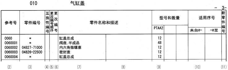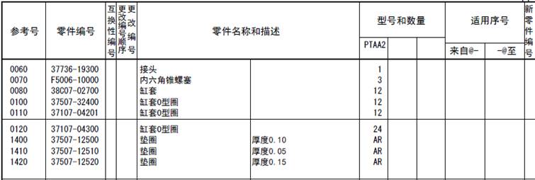 該零部件,在FROM 欄里表示從幾號(hào)開(kāi)始能夠適用、在UPTO 欄里表示到幾號(hào)為止能夠適用。