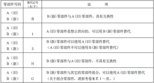 對(duì)上一次發(fā)行后有變更的零部件、或新品種的零部件,表示為"V"。