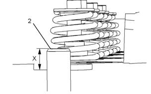 5檢查氣門導(dǎo)管(2)的凸出(X)。氣門導(dǎo)管應(yīng)比氣門彈簧凹槽高出12.7mm(0.500in)。有關(guān)更多資料,請(qǐng)參閱《技術(shù)規(guī)格》,“缸蓋氣門”。