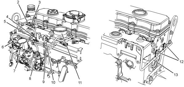 9如有必要,將管組件從缸蓋和噴油泵的增壓控制上拆下。有關(guān)正確的步驟,請(qǐng)參閱《拆解和組裝》,“噴油泵-拆卸(帶增壓控制)”。