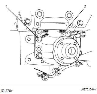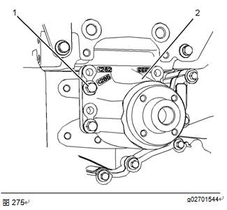 3將螺栓(1)安裝到風扇驅(qū)動組件(2),并用手擰緊。將螺栓擰緊至扭矩44N·m(32lbft)。