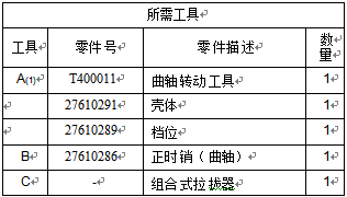 注:安裝工具(B)時(shí)不要使用過大的力量。在修理過程中不要使用工具(B)固定曲軸。