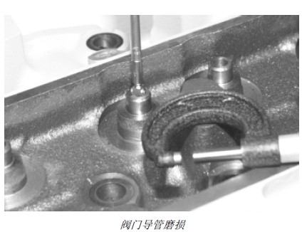 如果閥門導管與閥桿油隙超出磨損極限,需要更換加粗閥桿。到已認證的維修站選配閥門導管,以保證閥門導管與閥桿間隙符合技術規(guī)格的要求。如果閥門導管與閥桿油隙超出磨損極限,但不足 0.20 毫米(0.008 英寸),允許對閥門導管滾花,然后用絞刀加工到要求的尺寸。但是,應當首先選擇安裝加粗閥桿。(參見本章后面“閥門導管滾花”部分。)