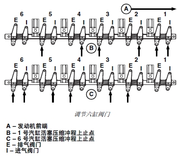 4. 調整 2 號、4 號和 6 號汽缸排氣閥門間隙和 3 號、5號和 6 號汽缸進氣閥門間隙。