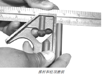 2. 測(cè)量推桿外徑 (B)。如果推桿外徑小于技術(shù)規(guī)格,應(yīng)安裝新推桿。