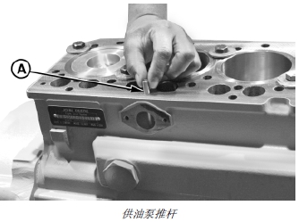 1. 拆卸并清洗推桿(A)。在末端做標(biāo)記,以便重新安裝時(shí)保持原來(lái)的方向。