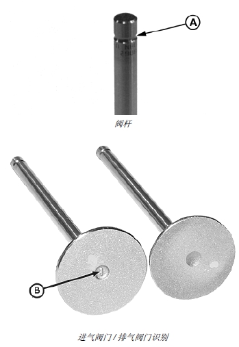 注意: 進氣閥門的氣門頭外徑較大,氣門頭上有一個凸起的 “I” 標記。排氣氣門頭無磁性。