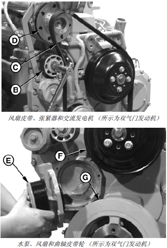 6. 對于四氣門John Deere約翰迪爾強鹿柴油發(fā)動機: 如果需要,整體拆下風(fēng)扇皮帶張緊器和支架。