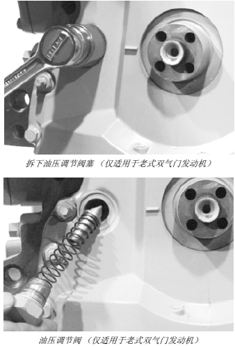 14. 對于雙氣門John Deere約翰迪爾強鹿柴油發(fā)動機:必要時,拆下油壓調(diào)節(jié)閥塞。拆下彈簧和閥門。(參見第 060 章“拆卸和安裝油壓調(diào)節(jié)閥”部分。)