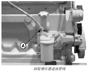 1. 排空機油并斷開渦輪增壓器的進油管路 (A)。