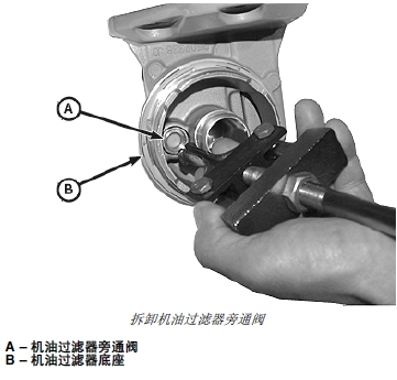 2. 對于高位安裝、前后安裝的機油過濾器,必要時可拆卸機油過濾器集管和油管及轉接器/ 冷卻器蓋。(參見本章“拆卸、檢查和安裝機油過濾器底座”部分。)